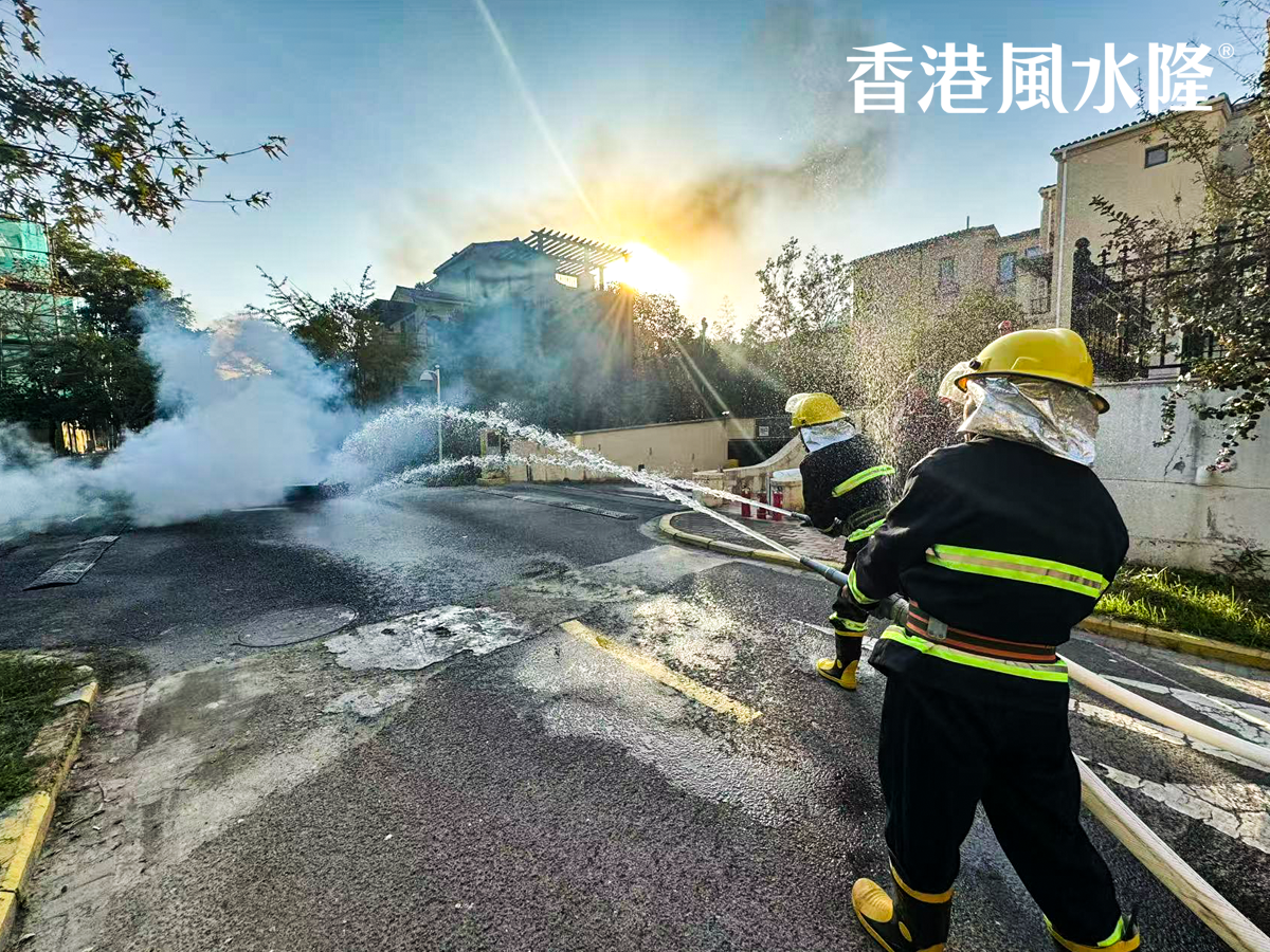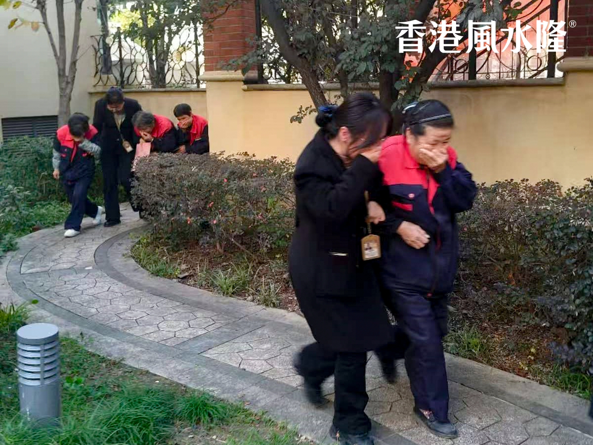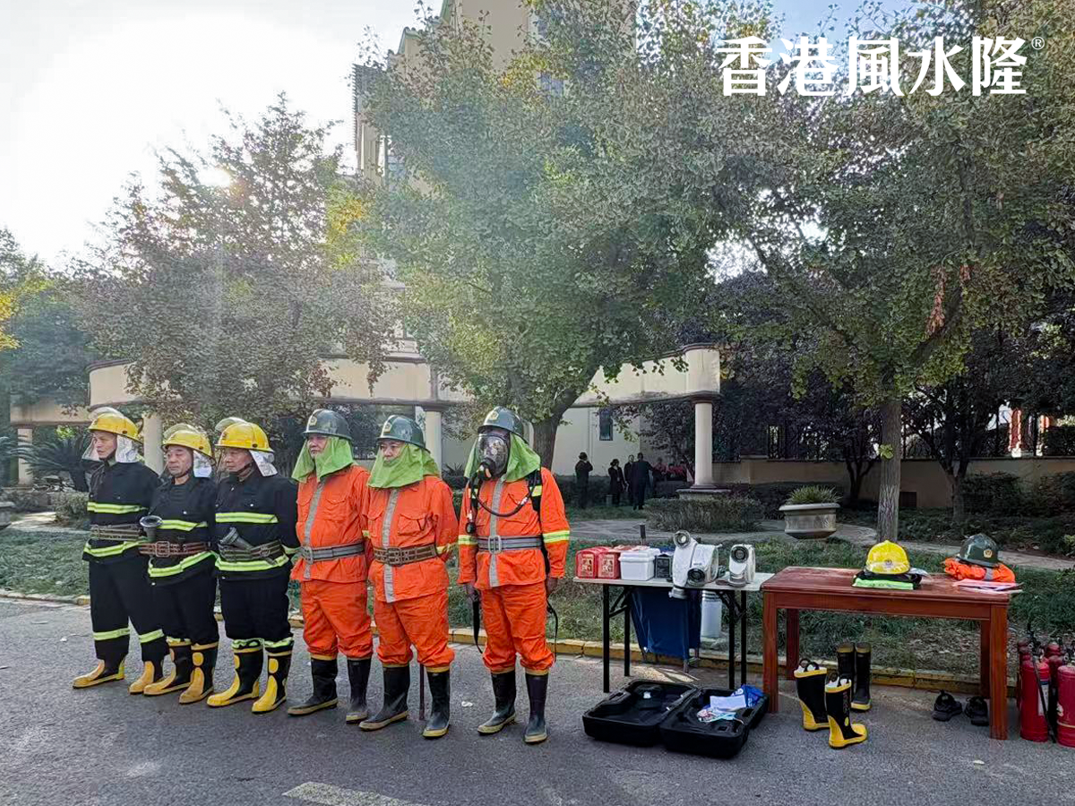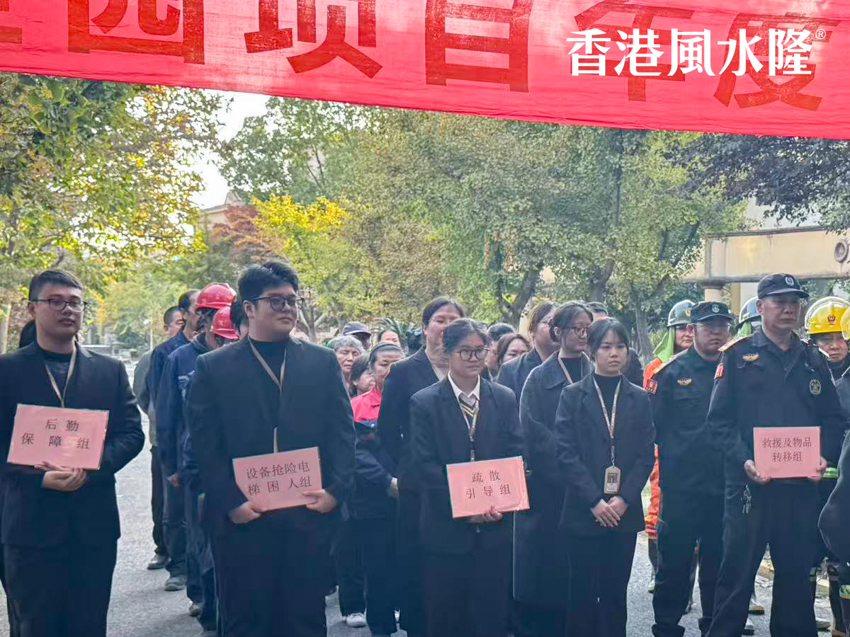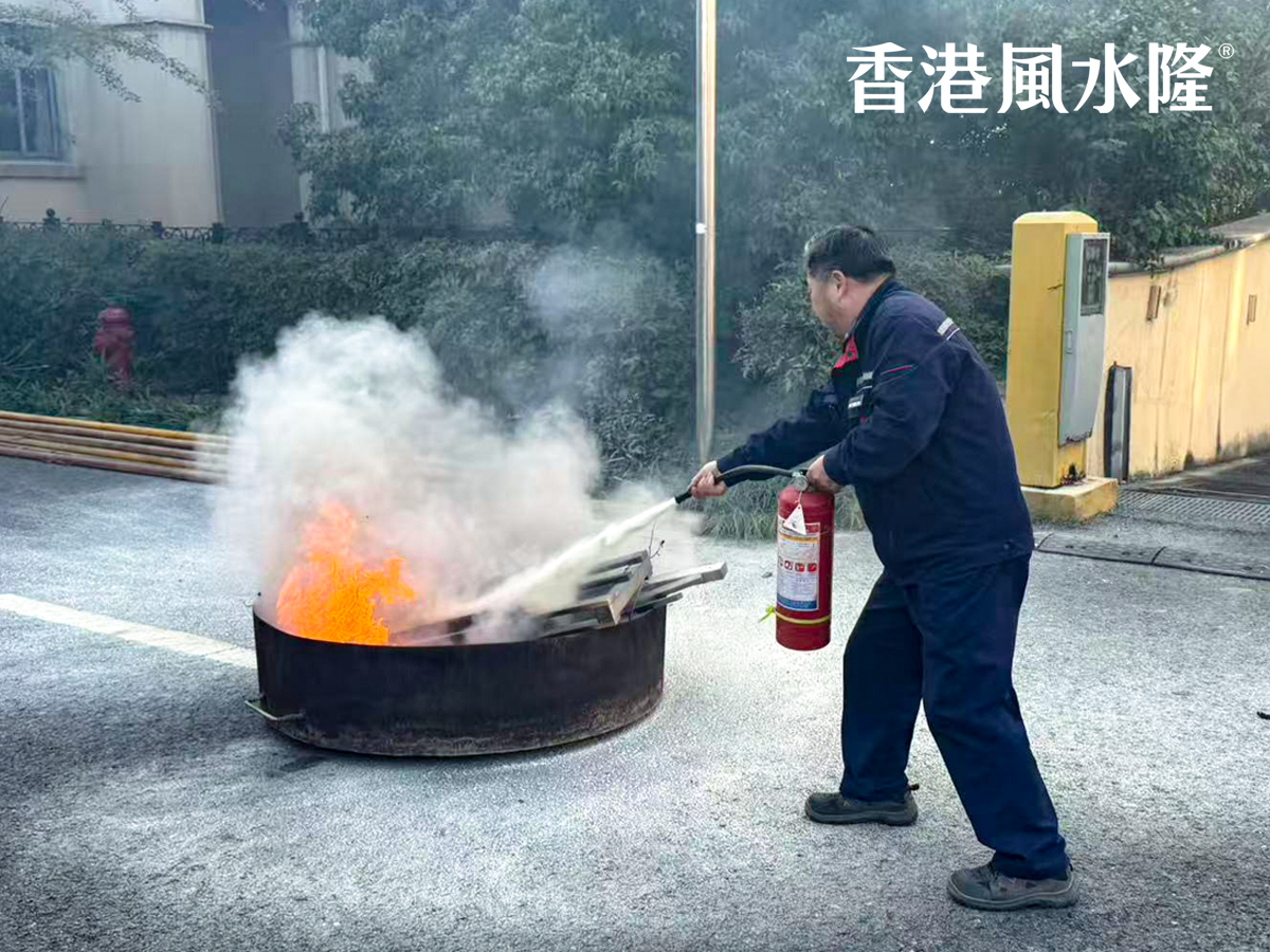 整个实战过程紧张有序,各部门分工明确、配合默契,从警报拉响到全员安全集结、火情 “扑灭”,仅用了5分钟,尽显风水隆物业的硬核应急能力。