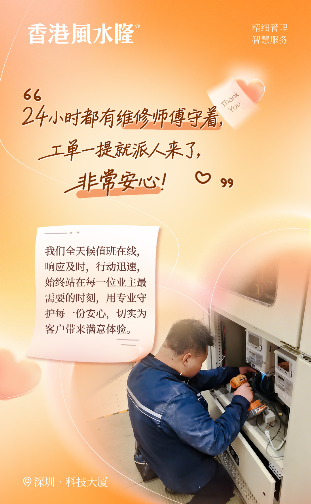 我们全天候值班在线,响应及时,行动迅速,始终站在每一位业主最需要的时刻,